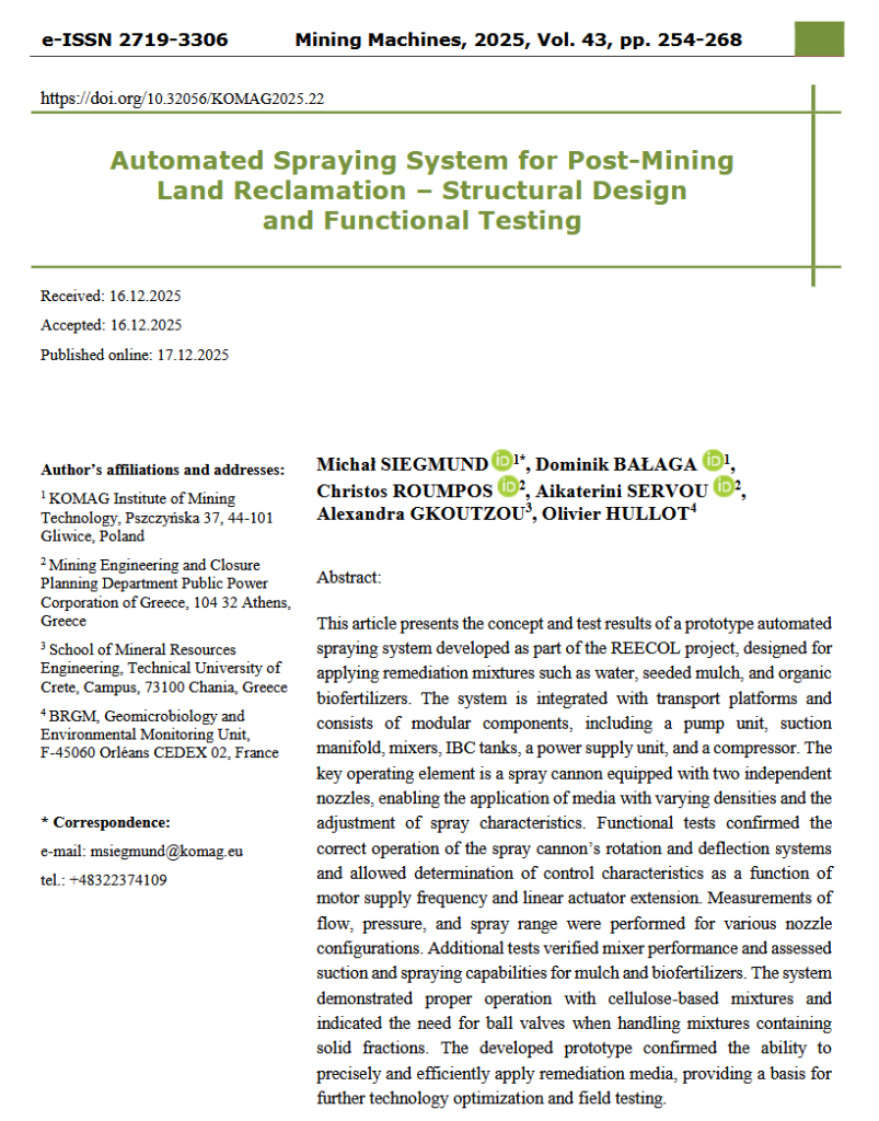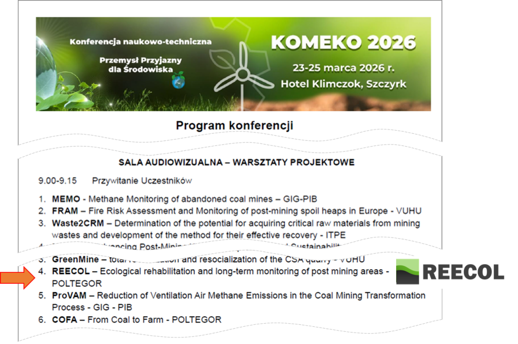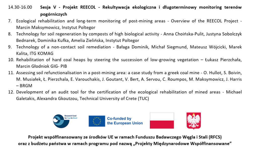 During a session on projects in which Instytut KOMAG is involved, the project coordinator, Poltegor-Instytut, delivered a presentation “REECOL – Ecological rehabilitation and long-term monitoring of post-mining areas”.